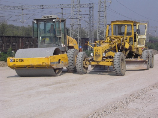 Grader (rechts) und Walze (links)